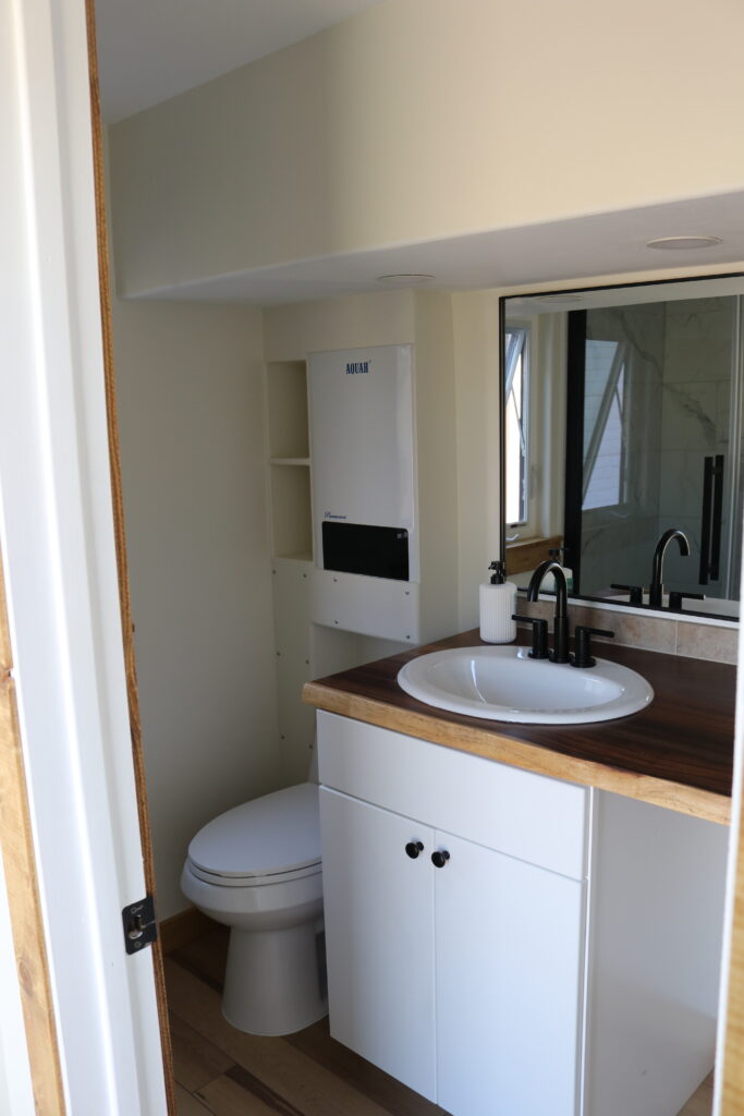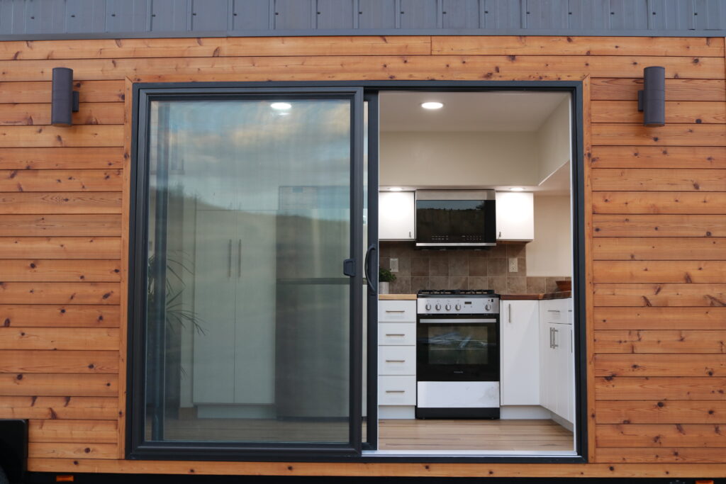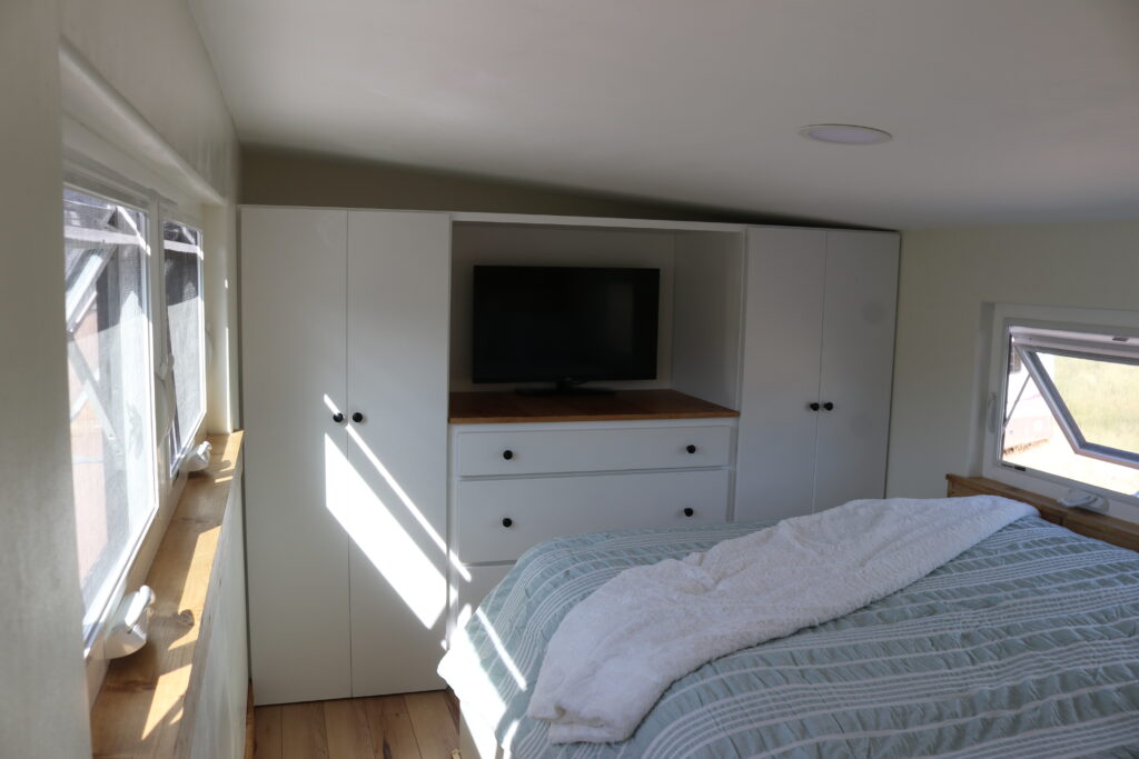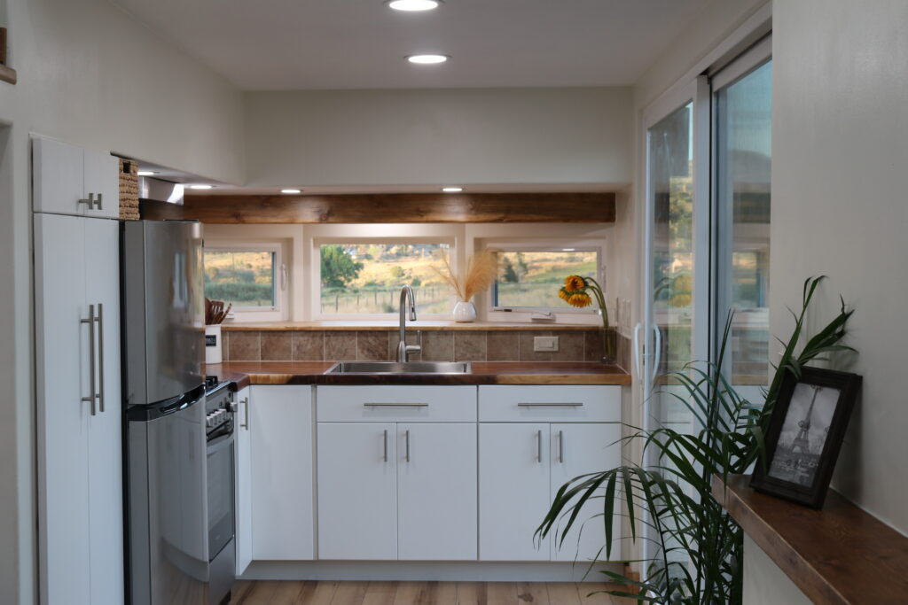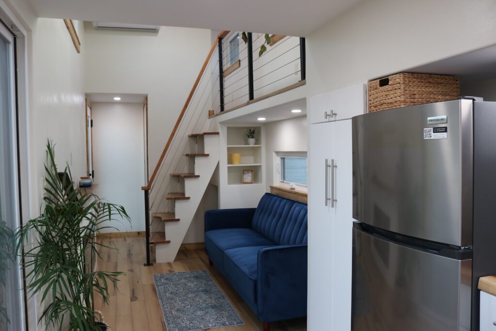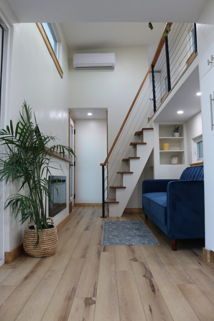 The Felicity is the original two-story tiny home with two bedrooms upstairs. The main level features a full bathroom with a walk-in shower, a full kitchen with a bay window and a large pantry, and a stunning living room with a fireplace, vaulted ceilings. The home includes 11 windows (including 5 large 6-foot-wide windows) and an 8-foot-wide sliding glass door to welcome in the natural light. True to its meaning, the Felicity will bring happiness to your life when you experience the luxury of living in a tiny home that actually feels like a real home.